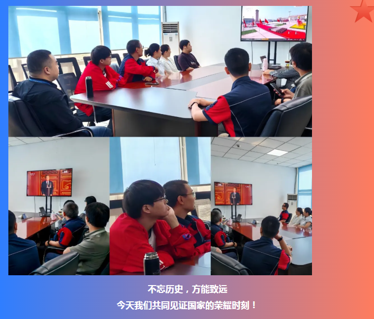 此次集体观看阅兵,既是一次深刻的历史教育,也是一次生动的团队建设。让我们在同一面国旗下,同一片屏幕前共同感受国家的强盛与民族的复兴,以实际行动表达对祖国的热爱与敬意。