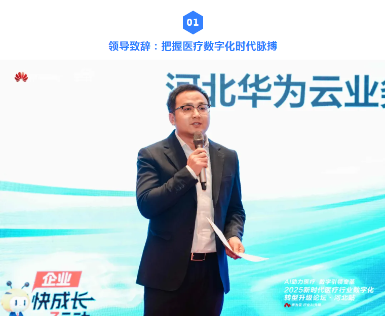 华为云河北副总经理在开幕致辞中指出:2025年作为十四五规划收官之年,医疗行业数字化已从选择题变为必答题。在政策、技术与市场需求的同频共振下,行业急需构建新型数字医疗服务模式,实现从被动诊疗向主动健康管理的战略性转变。